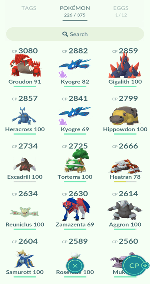 1x Ho-Oh, 4x Kyogre, 2x Groudon