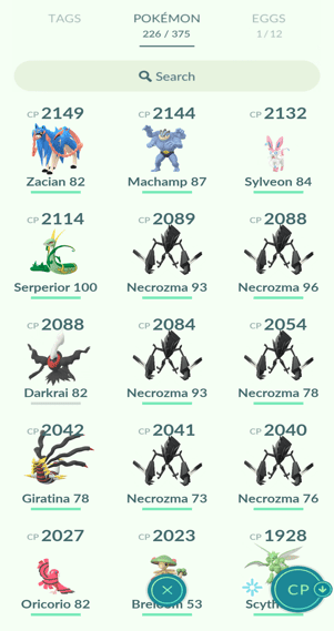 1x Zygarde (10%), 6x Necrozma, 1x Zacian (Hero of Many Battles)