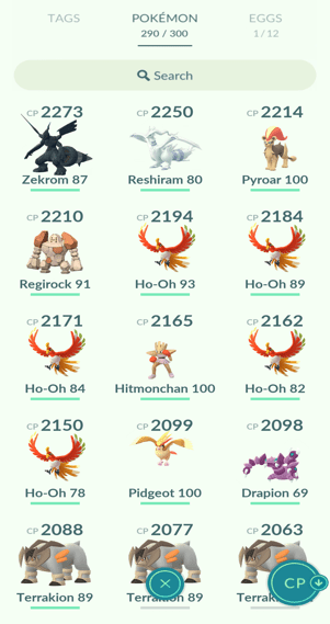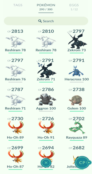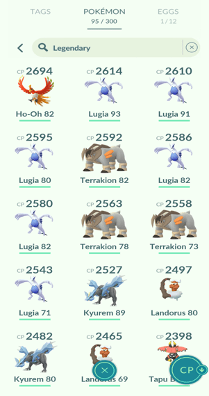 7x Lugia, 10x Ho-Oh, 2x Regirock