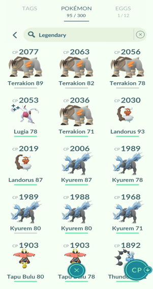 7x Kyurem, 1x Zygarde (10%), 6x Tapu Koko