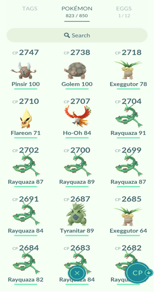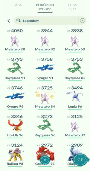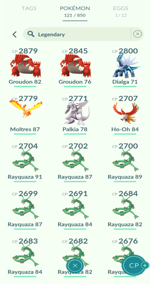 7x Groudon, 30x Rayquaza, 1x Azelf