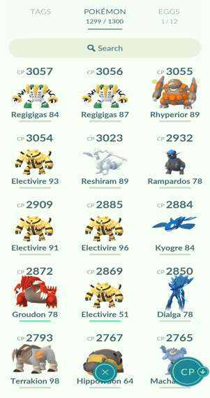 2x Registeel, 5x Kyogre, 1x Groudon