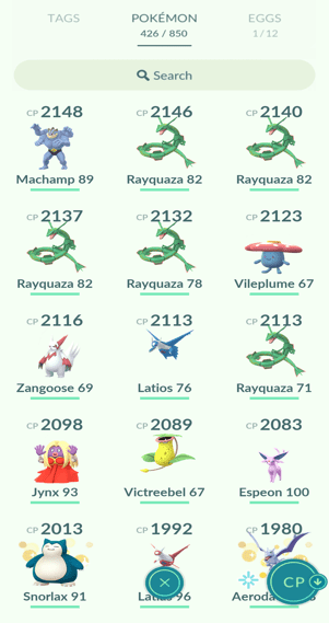 1x Kyogre, 1x Groudon, 10x Rayquaza