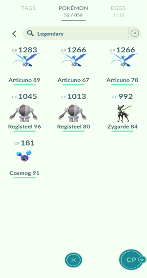 1x Dialga, 1x Zygarde (10%), 1x Cosmog