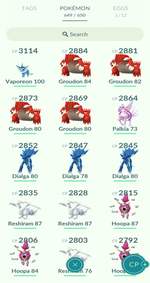 8x Kyogre, 9x Groudon, 2x Rayquaza