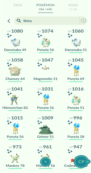 28x Ponyta, 21x Ponyta (Galarian), 1x Slowpoke