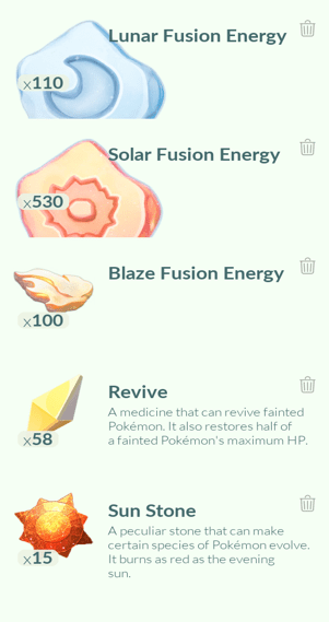 2x Zangoose, 1x Solrock, 1x Lileep