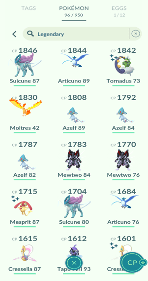 4x Mewtwo (Armored), 2x Raikou, 1x Entei