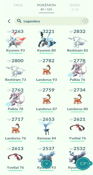 1x Landorus (Incarnate), 15x Kyurem, 1x Kyurem (Black)
