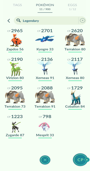 1x Zapdos (Galarian), 1x Kyogre, 1x Mesprit