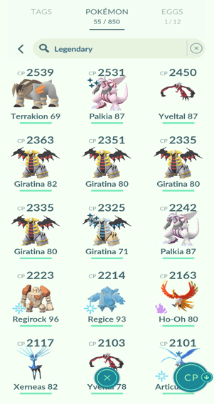 1x Regigigas, 13x Giratina (Altered), 3x Giratina (Origin)