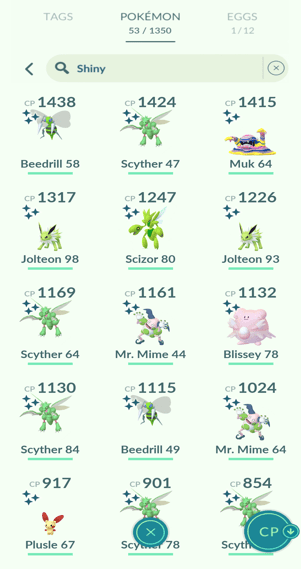 7x Scyther, 1x Ditto, 1x Vaporeon
