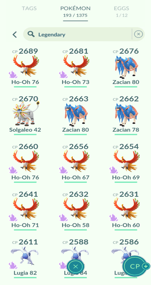 2x Entei, 13x Lugia, 12x Ho-Oh